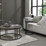 Atlas Silver Grey dining combines classic and contemporary styling to create timeless statement pieces for any home. Comprised of circular and lozenge-shaped forms, this range highlights on-trend, organic and flowing designs that provide a calming feel with softened edges and curves. This aesthetic is accentuated with saw-cut ash chevron pattern on the tables and cabinet tops which are finished in a fresh silver grey, and accompanied with matching turned tapering legs or contrasted with peppercorn powder coated metal frames. Slate grey fabric upholstered dining chairs and tambour doors complement this palette choice and add texture to pieces such as the sideboard and open display unit, whilst quality touches such as soft-closing runners speak to the craftsmanship and refinement of Atlas.