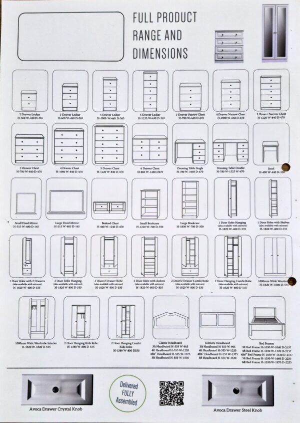 The Avoca White Drawer Chest is part of the Avoca Collection, it available in 2,3,4, 5 and six drawers, this Furniture range reflects charm and elegance and adds warmth and sophistication to any home.  The Avoca Collection is made in Ireland