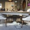 The Bella table is a stunning addition to your dining area with its pedestal base provides stability in a simple yet bold frame.