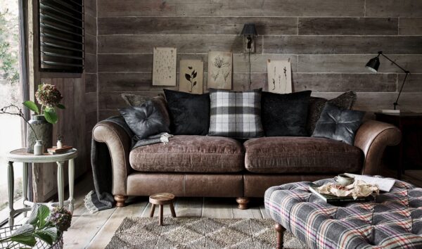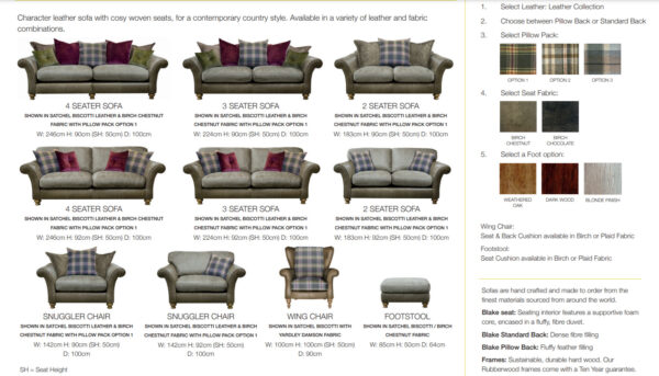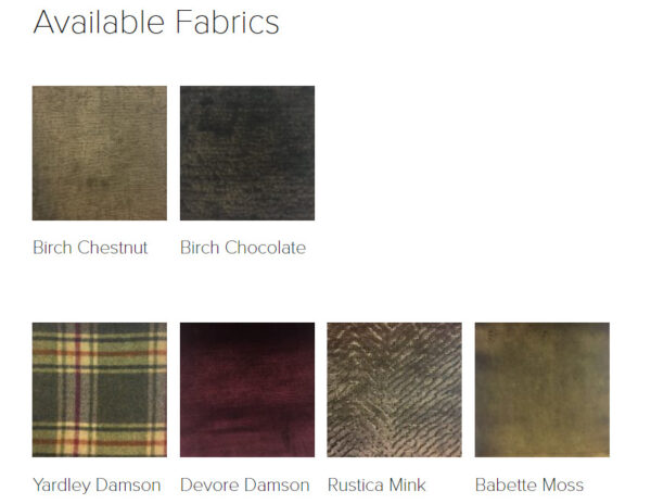 Floor model pictured – Satchel Biscotti Leather & Birch Chestnut Fabric. Also shown in Birch Chocolate fabric.
