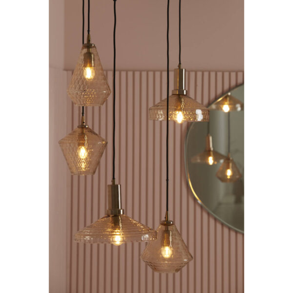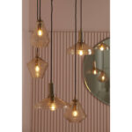 The Delilu Hanging Lamp (Amber Antique Bronze) combines vintage charm with modern design. The amber glass shade emits a warm, inviting glow, while the antique bronze finish adds a touch of old-world elegance. This compact hanging lamp is perfect for small spaces or as part of a cluster of lights.