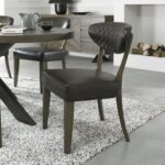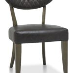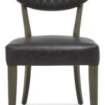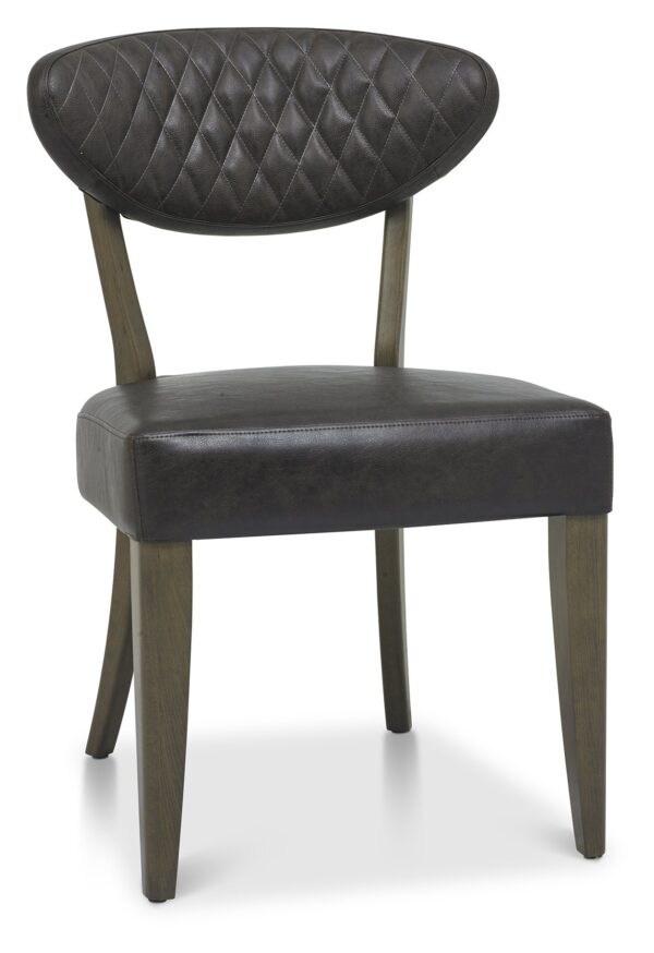 The Ellipse Fumed Oak Dining Chairs are generously proportioned, styled with diamond stitch upholstery in a choice of luxurious old west vintage bonded leather, or a rust velvet fabric and feature plush padded seats, gently flared backs and elegantly tapering legs, imbuing comfort and indulgence.