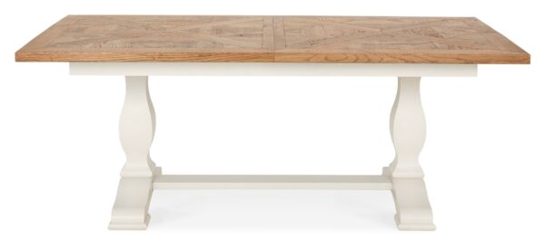Glenart is a classically styled design contrasting an ivory painted finish with beautifully hand-crafted marquetry tops using American white oak solid timbers and veneers. Each piece of furniture reflects the intensified natural characteristics of rustic oak wood such as knots, mineral streaks, pinholes, sapwood, handplaning, saw marks and wood colour variation. These natural variations in colour, grain and random positioning of knots add to the attraction of the wood, resulting in an individuality that is unmatched by regular furniture. The range is completed with bold bespoke handles in a rich antique brass finish. BLUM soft closing drawers add that extra refinement to what is a timeless classic.