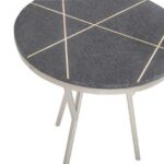 Attention-grabbing geometric patterns ornament this stone-topped lamp table pair etched with lustrous gold detail.