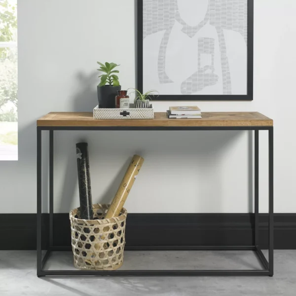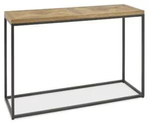 Killowen is a striking design combining saw-cut oak marquetry tops with a ‘peppercorn’ finished wire-brushed oak veneered frame and a welded black powder-coated metal base, giving it an on trend industrial edge. Each of the hand-crafted pattern tops are wire brushed and distressed to give a rustic look and tactile feel, making the most of the beautiful and varied grain of oak. BLUM soft closing hidden drawers within the sideboard cabinets add that extra refinement to the range in what will create a stunning focal point in any dining room.