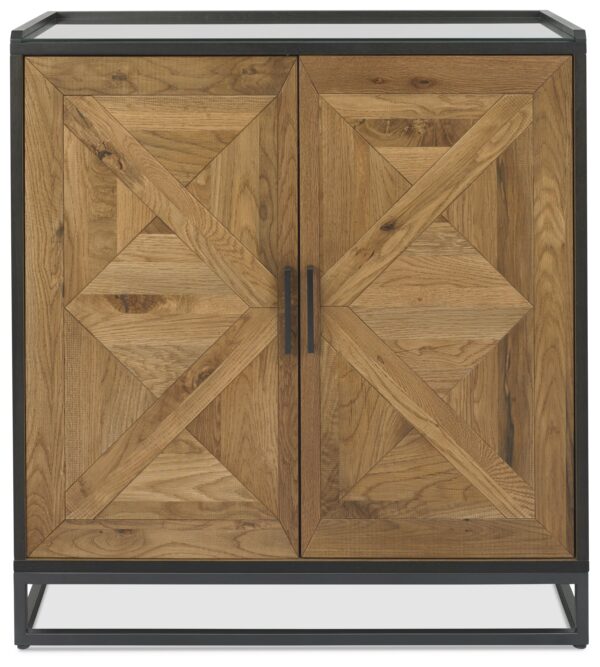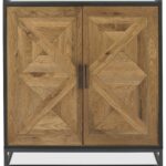 Killowen is a striking design combining saw-cut oak marquetry tops with a ‘peppercorn’ finished wire-brushed oak veneered frame and a welded black powder-coated metal base, giving it an on trend industrial edge. Each of the hand-crafted pattern tops are wire brushed and distressed to give a rustic look and tactile feel, making the most of the beautiful and varied grain of oak. BLUM soft closing hidden drawers within the sideboard cabinets add that extra refinement to the range in what will create a stunning focal point in any dining room.