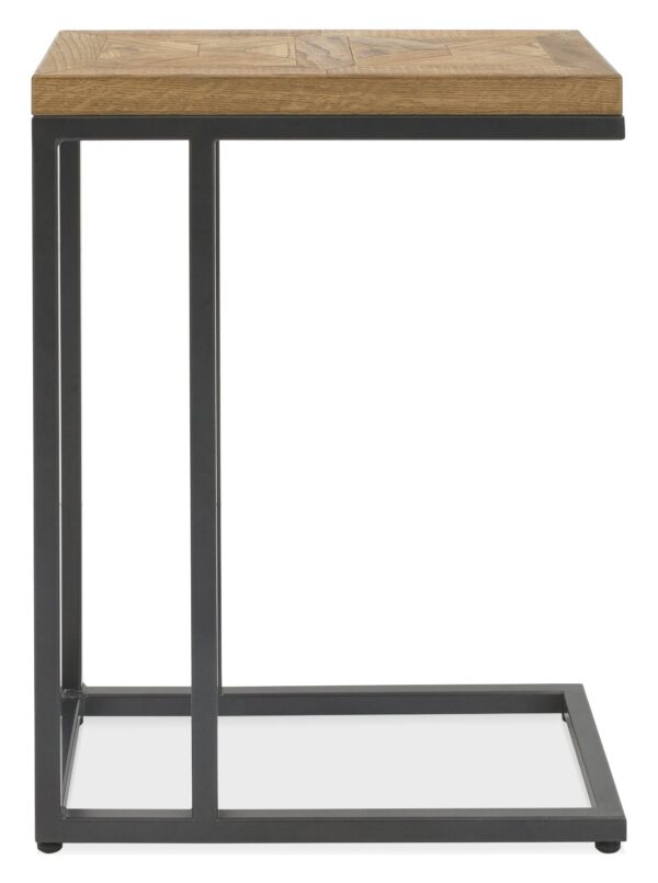 Killowen is a striking design combining saw-cut oak marquetry tops with a ‘peppercorn’ finished wire-brushed oak veneered frame and a welded black powder-coated metal base, giving it an on trend industrial edge. Each of the hand-crafted pattern tops are wire brushed and distressed to give a rustic look and tactile feel, making the most of the beautiful and varied grain of oak. BLUM soft closing hidden drawers within the sideboard cabinets add that extra refinement to the range in what will create a stunning focal point in any dining room.