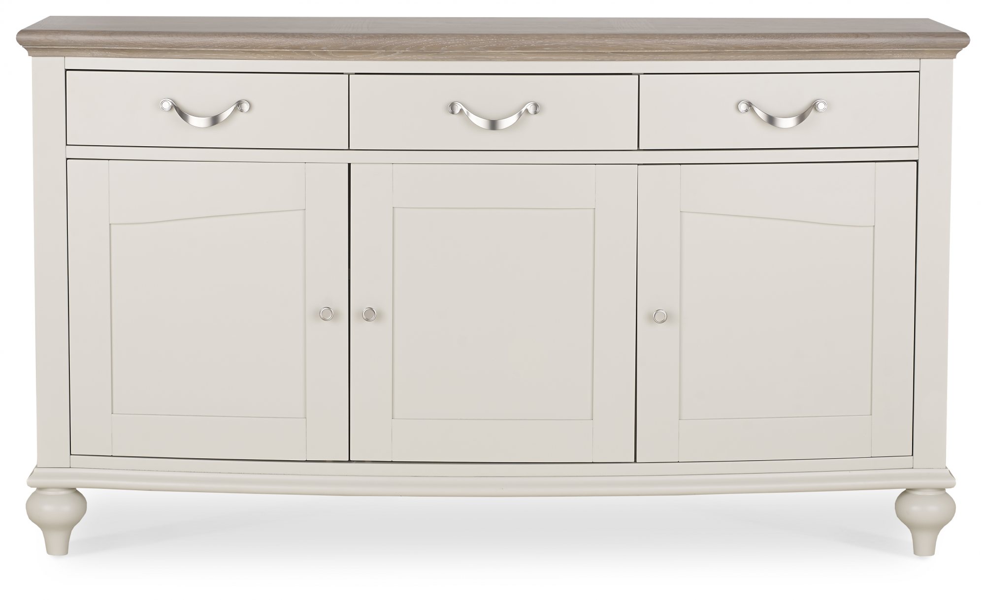 With Drama and sophistication in abundance, the Montreux Sideboard boasts a beautiful form by way of serpentine framed tops, gently bow-fronted cabinet and classically styled turned legs. Bespoke handles, intricate oak marquetry tops which all add to the design details. Quality touches such as soft closing drawers for the cabinets epitomes the best of contemporary deign for everyday use.