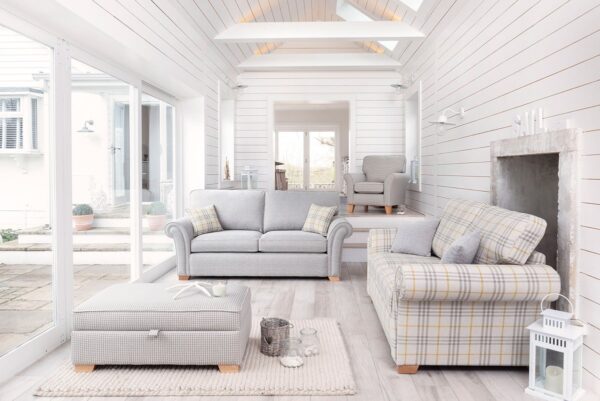 A casually classic scroll arm design with a sharp tailored finish. The proportions are generous with perfectly curved lines and a high back for supreme levels of comfort. Fashionable smokey oak feet work beautifully with a mix of soft coastal stripes, checks and a choice from a pastel pallet of fabrics. Bring some coastal charm into your room with Alstons Upholstery’s newly refreshed model!
