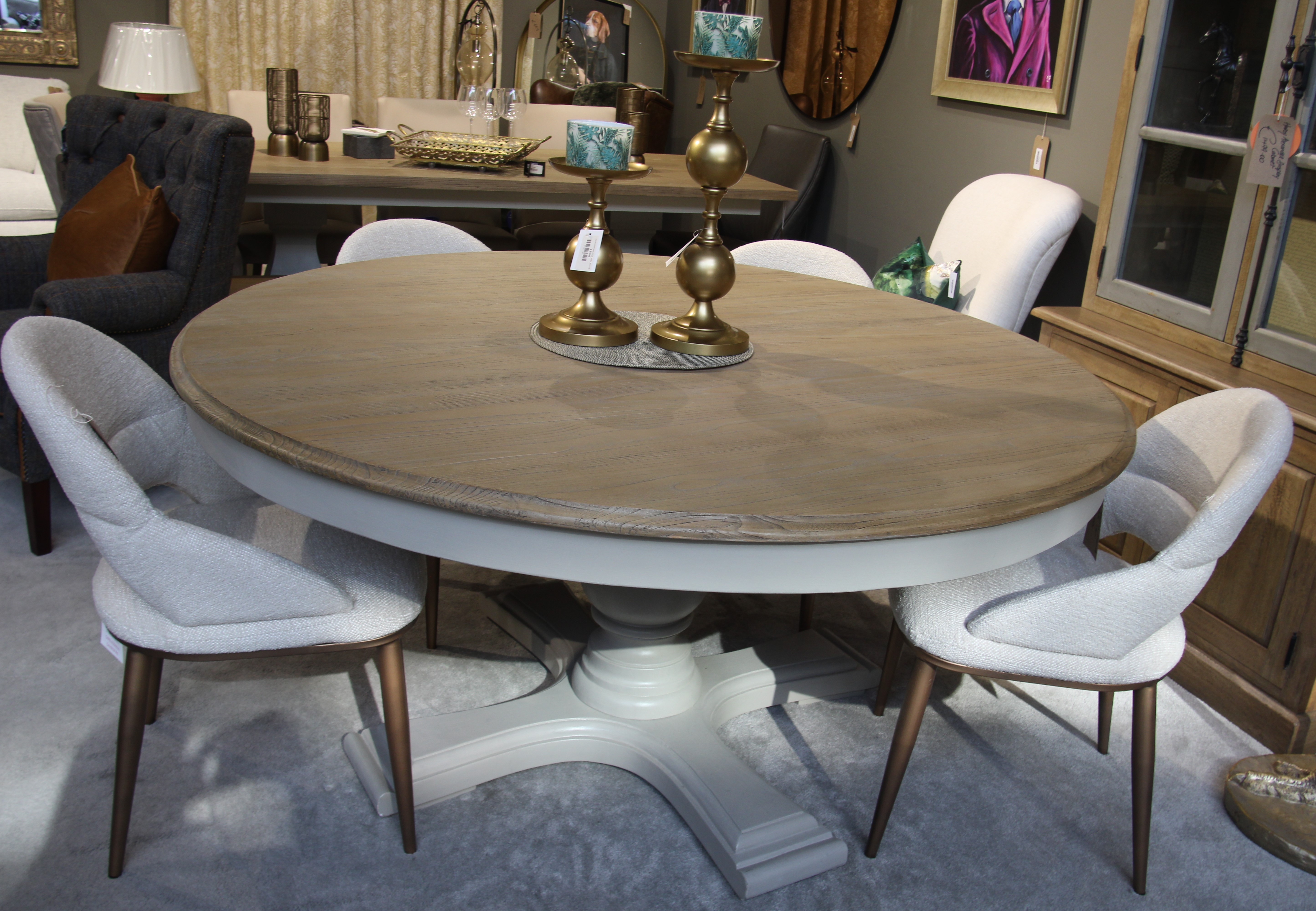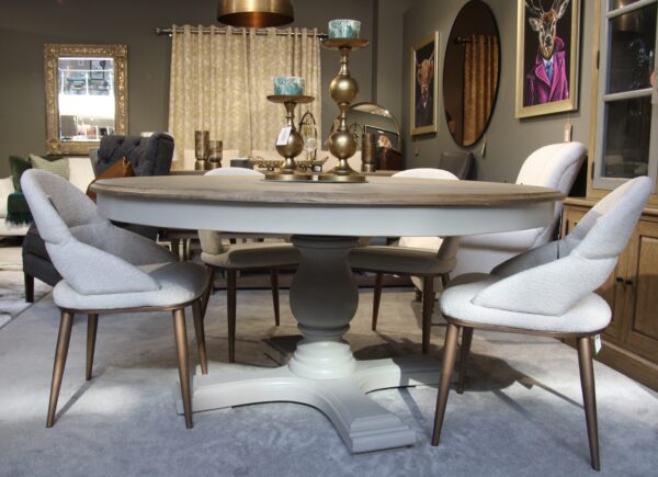 The Pippa Round Dining table can easily accommodate 6 people, so is perfect for the growing family, as the natural grain and texture of the wood will age naturally over time and it is a stylish and practical choice for the family. The base colour is Hardwick from the popular farrow and ball collection in a hand painted finish for added character.