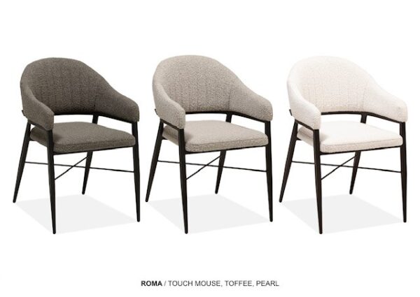 The Roma Chair is a classic design which is upholstered in a Bloq fabric, giving the chair a unique look. The cross base gives extra stability and sturdiness ensuring the chair remains comfortable. Available in three colours. Touch Coffee, Touch Mouse and Touch Pearl.