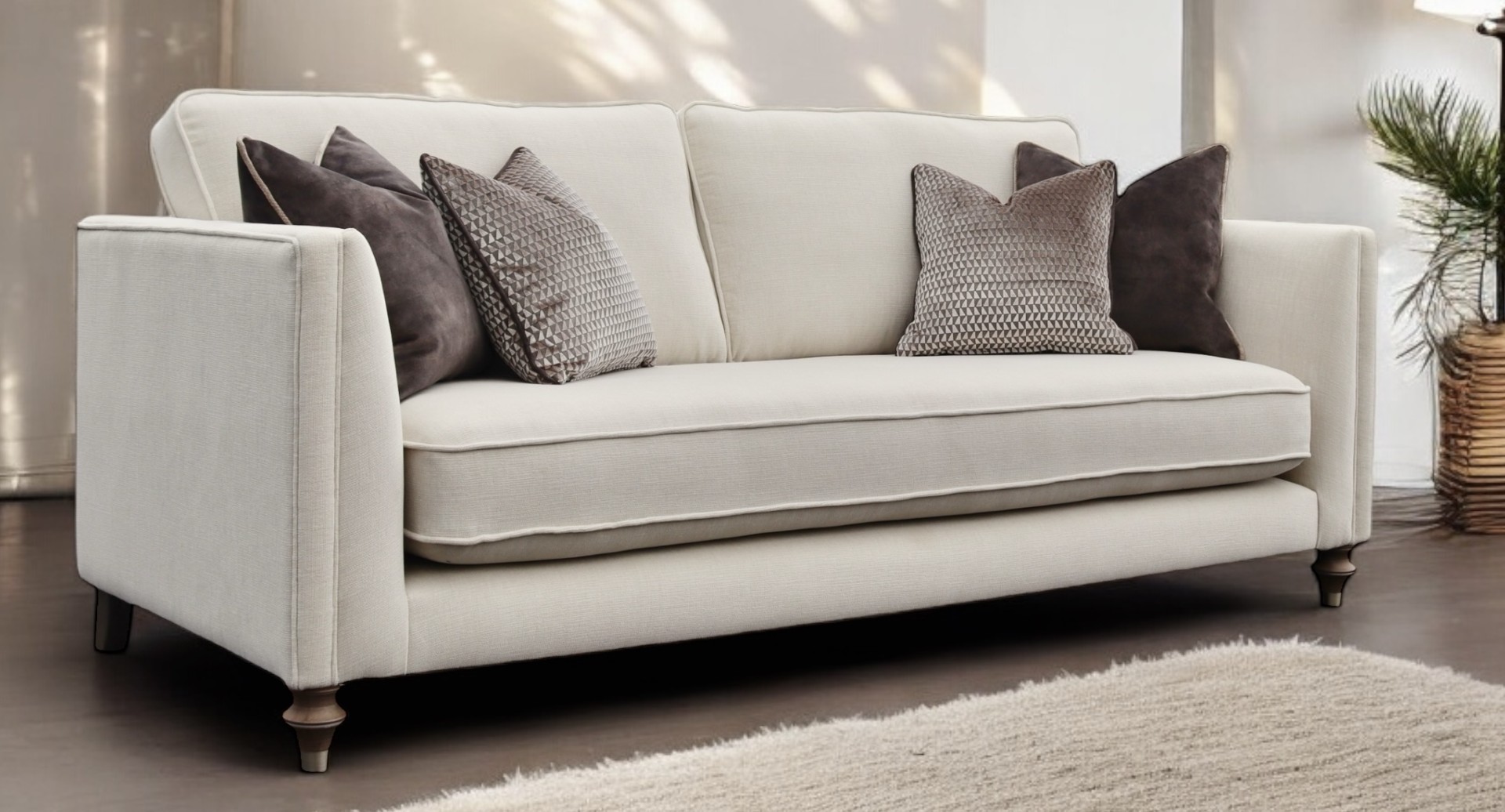 The Soho 3 Seater Sofa is handcrafted in Ireland, the frames are Kiln Dried Hardwood Beech, a high quality timber which guarantees a robust frame that stands the test of time. All McQuaid Frames include a 20 year structural guarantee. Call instore to try our display model and browse the colours available – Order time is 12-14 weeks.