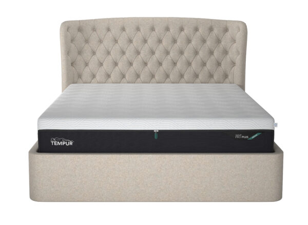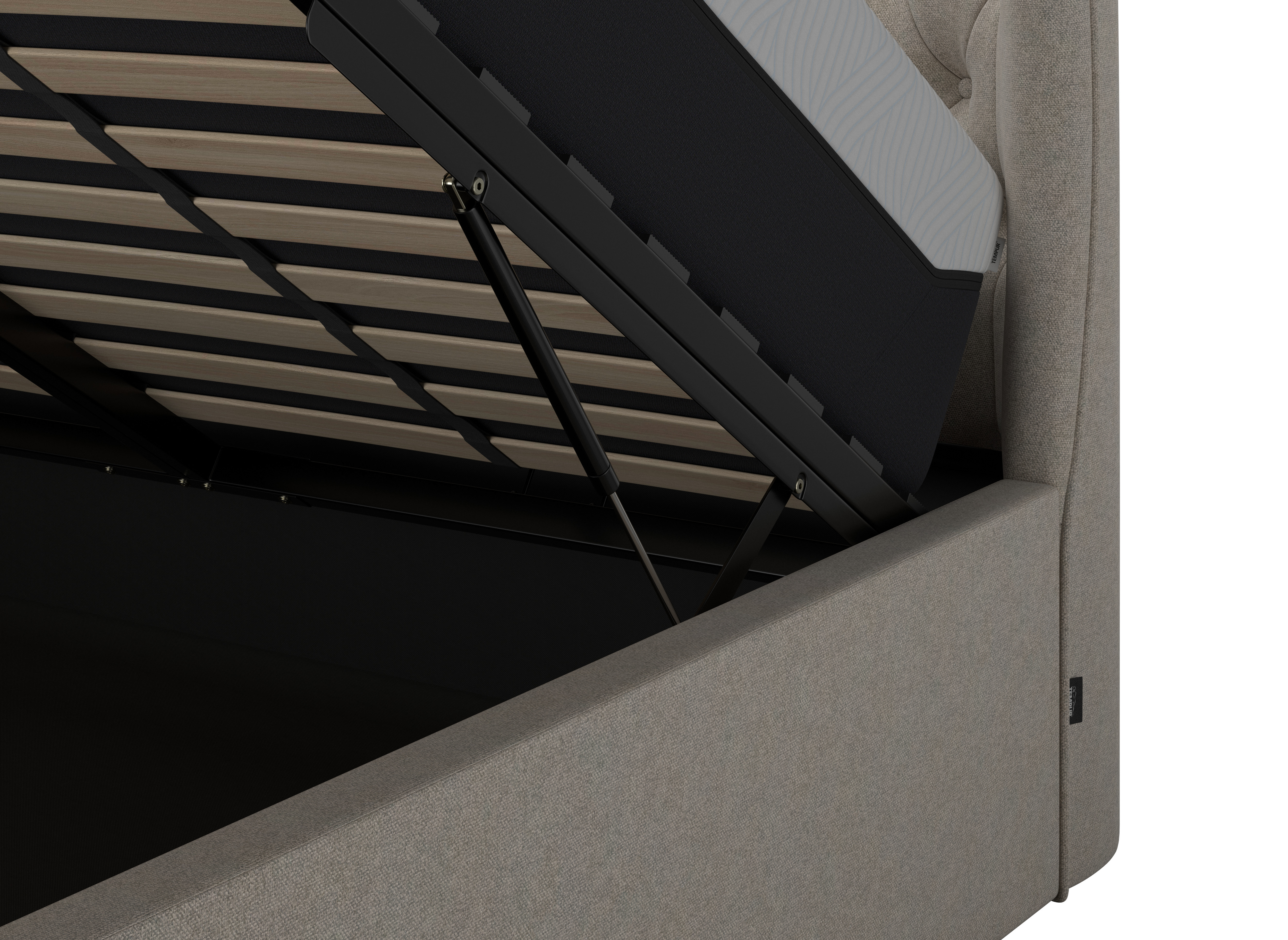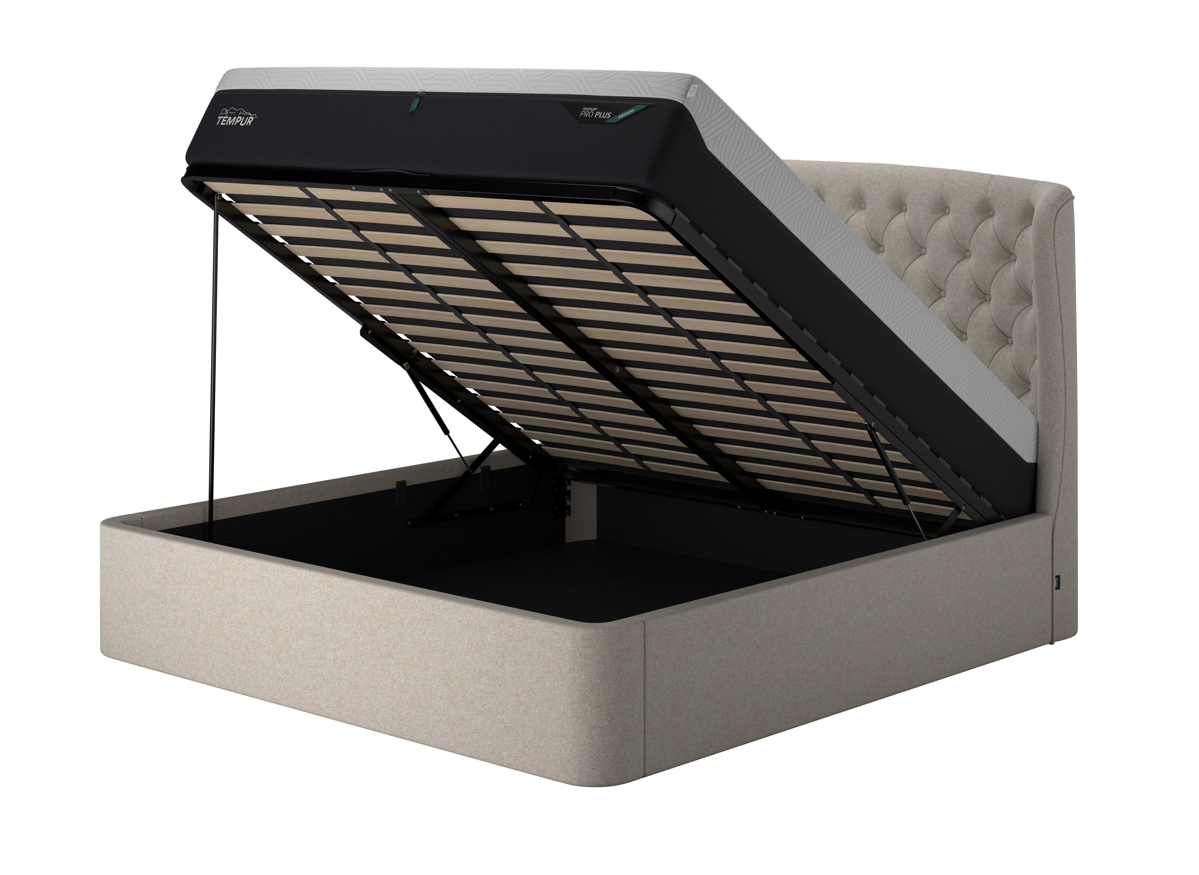 The Tempur Holcott Ottoman Bed is the perfect blend of classic and contemporary with its stately high backed, winged headboard, plush buttoned style finishing and chic slim line frame. The slatted wooden base provides optimal airflow and ventilation for your mattress. The Ottoman also provides a huge out-of-sight storage space, easily revealed by lifting the slatted base provides a flexible yet strong surface for your mattress, with plenty of airflow and ventilation.