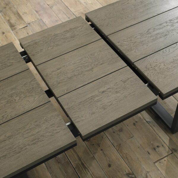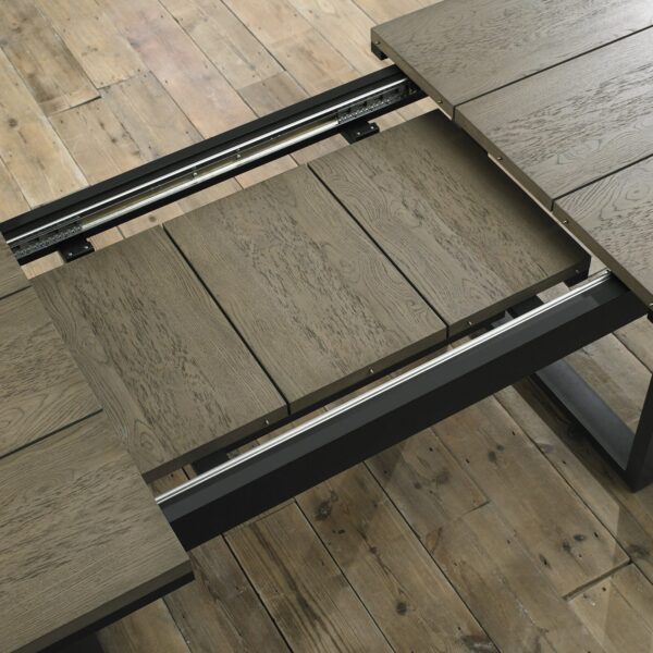 Tivoli is an industrial and on-trend mixed media dining range incorporating a bold and striking mix of wire brushed weathered oak with ebonised accent detailing and black powder-coated metal frames. Cantilever chairs with meticulously polished frames and precision cut joints using the latest technology are available in a dark mottled grey fabric featuring a bold square pattern stitch detail with a handle in the back and superior glides on the base for ease of manoeuvre.