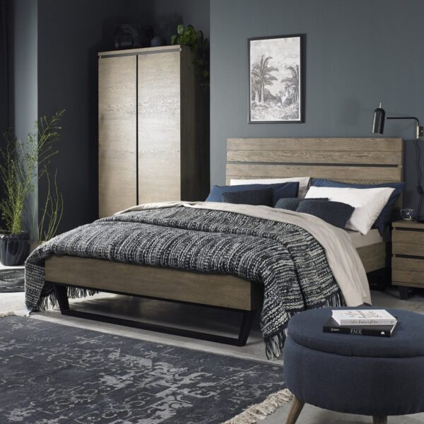 Tivoli is a contemporary and on-trend bedroom range incorporating a bold and striking mix of wire brushed rustic weathered oak with ebonised accent detailing and legs. Design features include staggered planking effect on the headboard & cabinet facia and unique tapering legs with fluting detail. Practical touches such as BLUM soft close drawer runners and a hide-away dressing table mirror makes Tivoli a compelling choice for the modern bedroom.