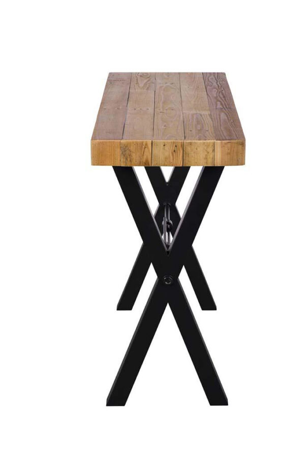 Industrial ‘X’ leg design with stretcher bar in powder coated metal.