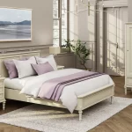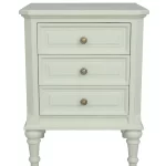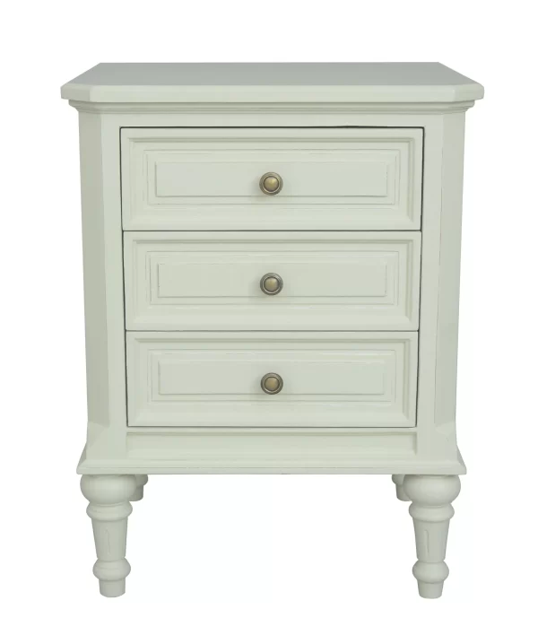 The Vanessa 3 Door Bedside Cabinet – traditional style, hand painted French collection. With its lovely curved and bow front sides making each piece different. Squared recessed legs and brass handles to add the finishing touches. Made frame solid and veneer woods, with tops in oak, hand painted in putty colour which is lightly distressed to give a genuine French look.