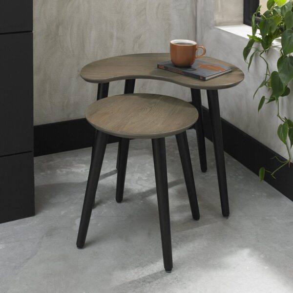 Taking inspiration from sophisticated mid-century styling through hints of both retro and Scandinavian design, Vintage is a fashionable range that features a varied blend of shapes and forms. Contrasting wire brushed weathered oak tops and carcasses with peppercorn painted base and legs are perfectly paired with a choice of upholstered chair styles in either a dark grey mottled fabric or an aged vintage bonded leather. Striking feature handles, engineered mitre joints, finely tapered legs, reciprocal extension runners and super comfortable casual chairs and stools made using moulded plywood shells with layers of foam encased in a ribbed look upholstery attest to the expert craftsmanship that underpins this collection. The natural shapes of the tables and radiused frames of the casual chairs and stools work with the geometrical and linear cabinet pieces to create a compelling and slightly eclectic blend. Vintage Dining boasts the perfect combination of inspired design with beauty and simplicity matched with craftsmanship, comfort and functionality.