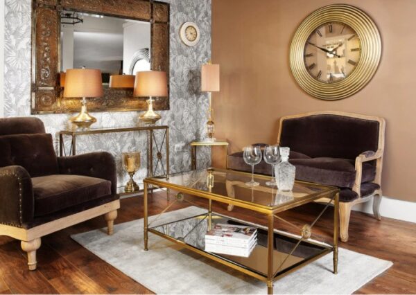 Gold crushed mercury glass, ultra luxurious with a clear crystal glass base. These lamps fit perfectly with both gold and silver décor. The shade is a rich bronze/copper in colour.